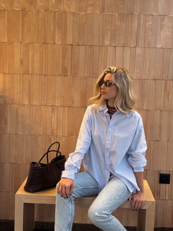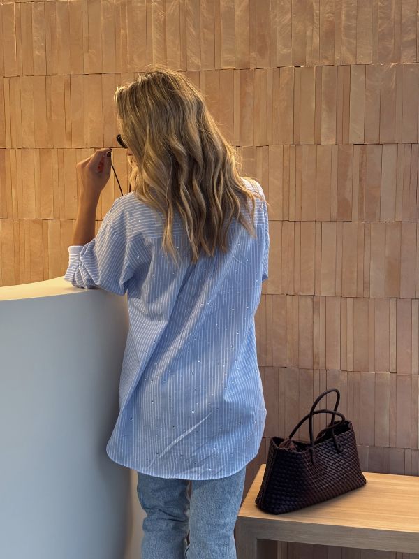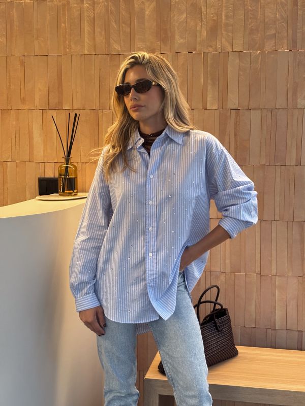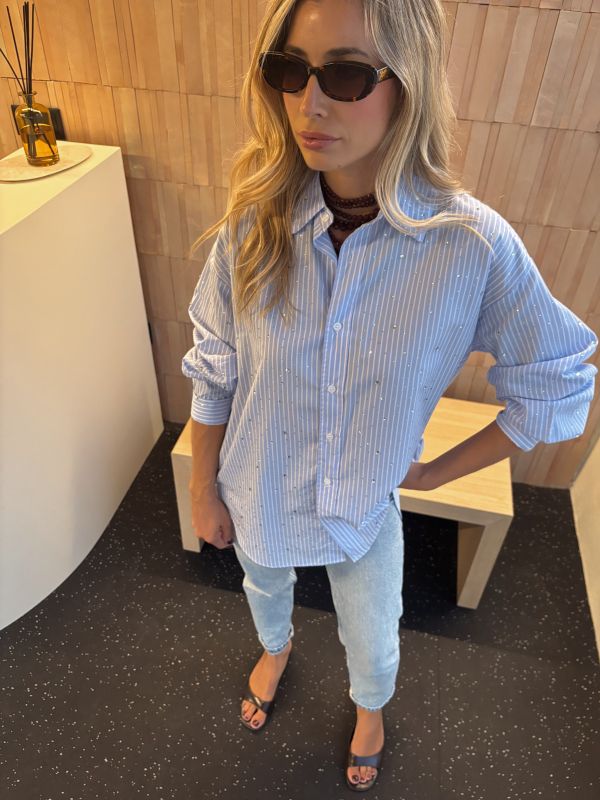 Camisa rayas azul con detalles de strass