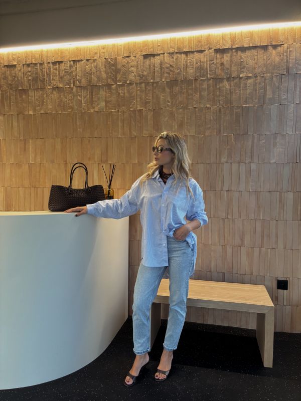 Camisa estilo oversize rayas en azul. Un básico que no puede faltar en tu armario este otoño.