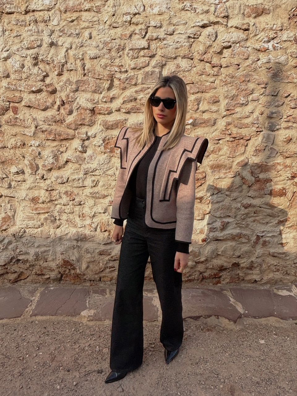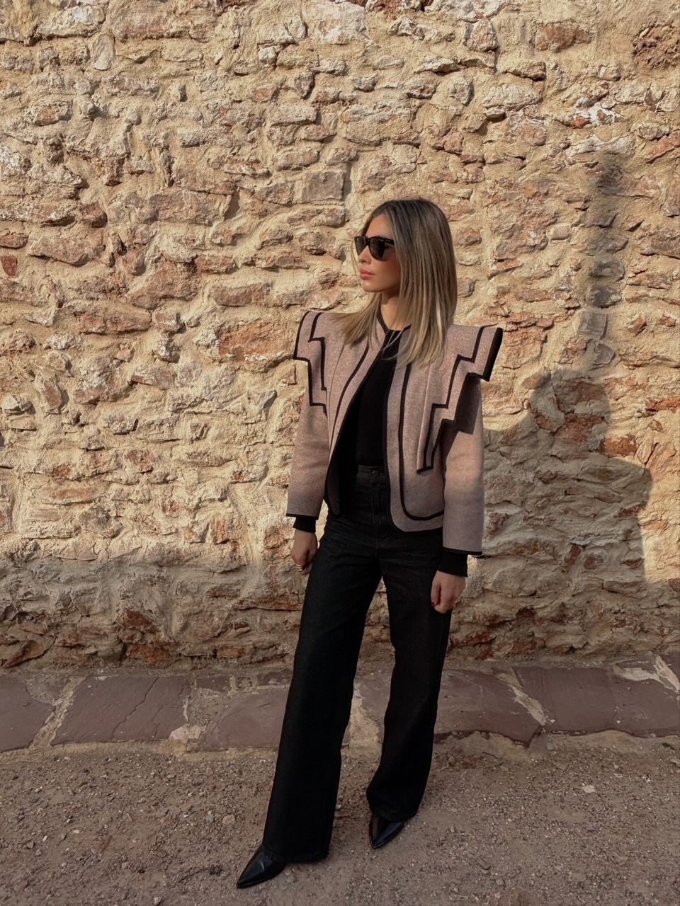 Sus hombreras a hacen especial y diferente. Solo tienes que llevar un total look negro y la chaqueta ya te creará un lookazo