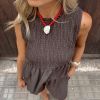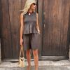 Su top con cuerpo en nido de abeja y volante y bermudas con bolsillos y goma en la cintura.