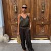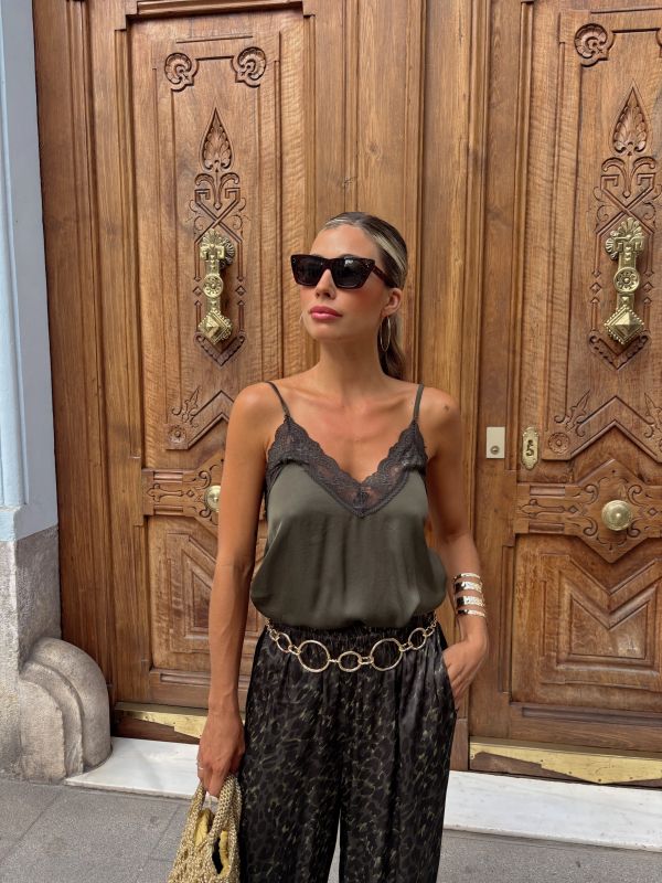 Nos encanta con top lencero en verde, y cuando refresque añádele una blazer en negro y sandalias o manoletinas negras.