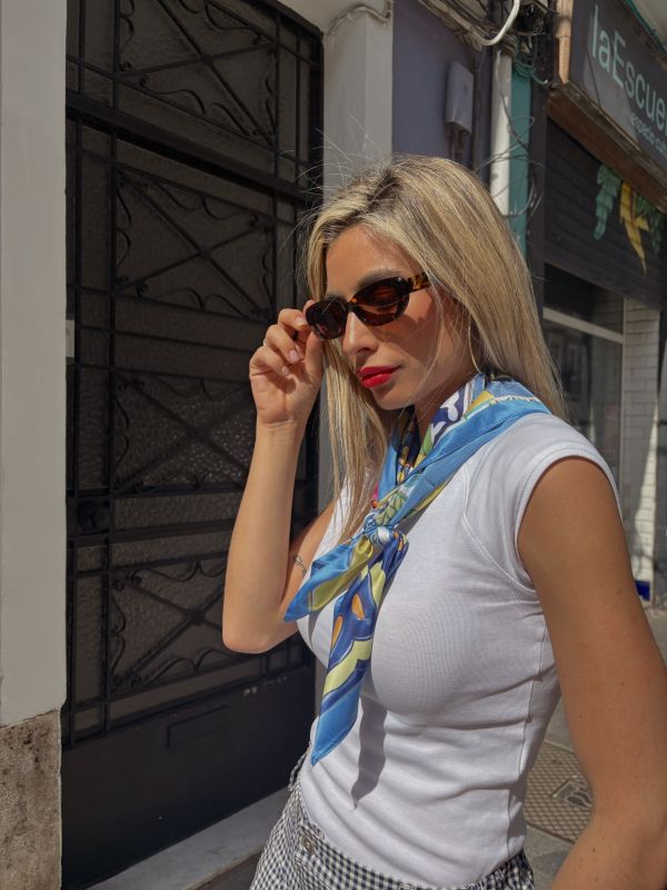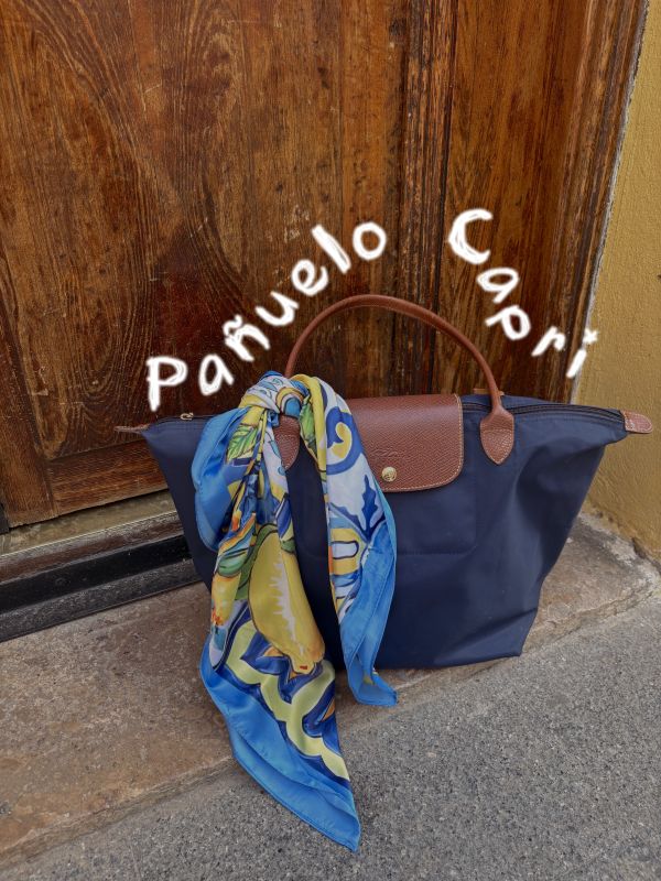 Pañuelo estampado limones en tonos azules y amarillos