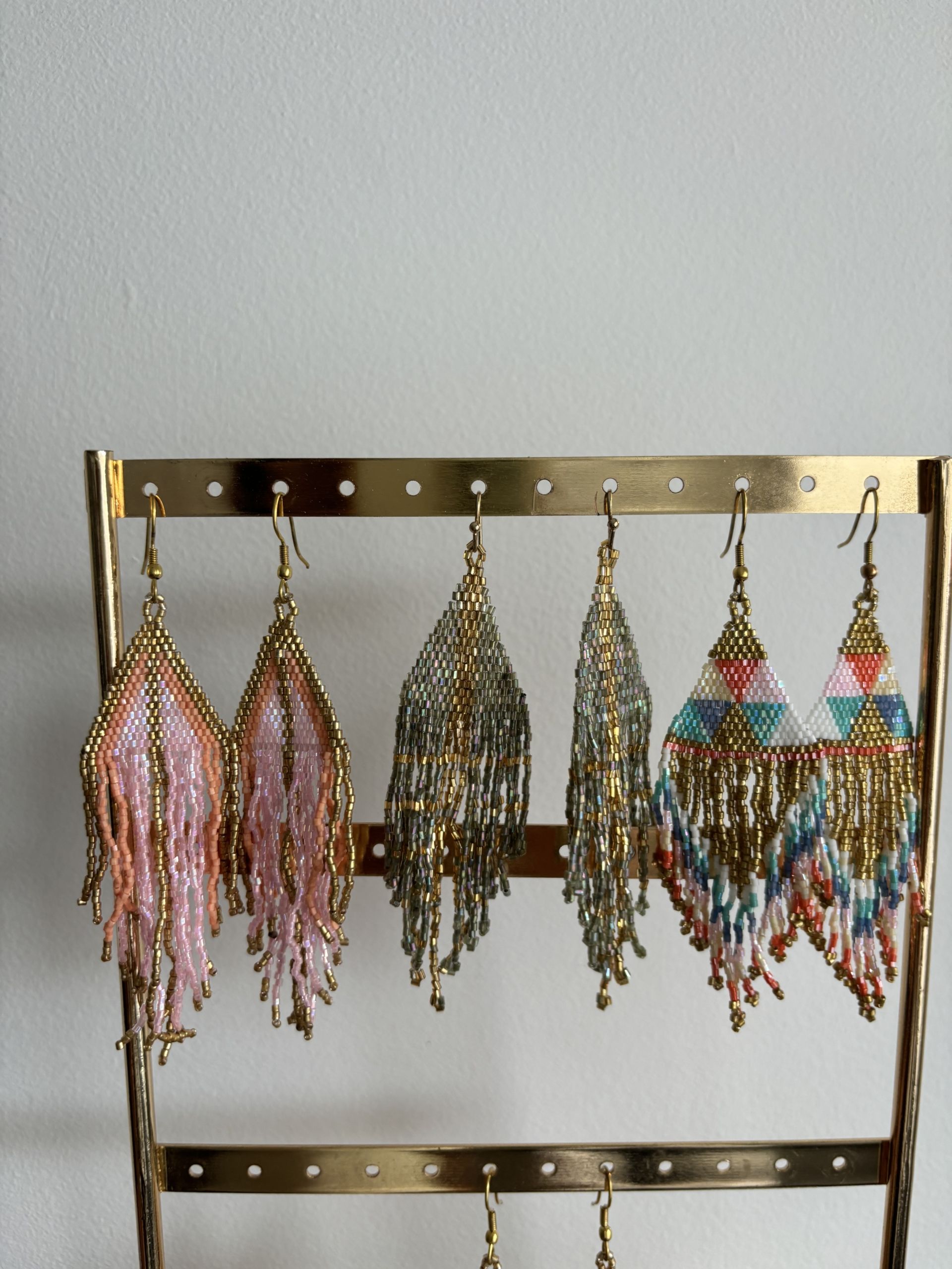 El complemento perfecto para tus looks de primavera – verano son estos pendientes largos y llamativos de cuencas de colores