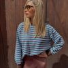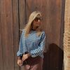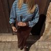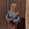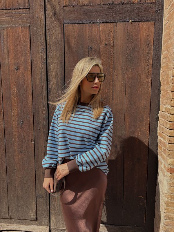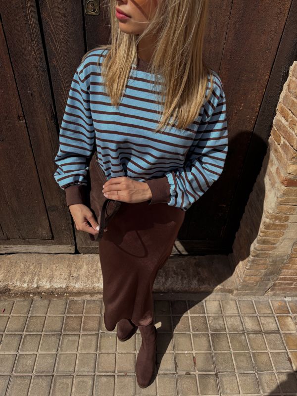 Sudadera a rayas combinada en marrón chocolate y azul.