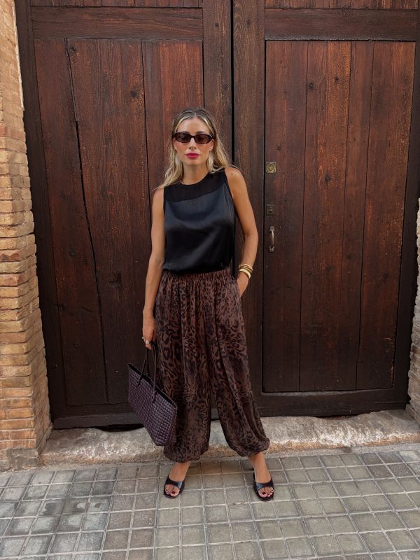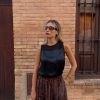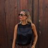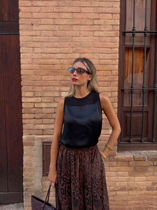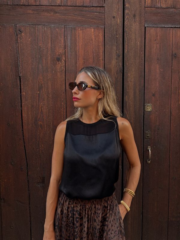 Top negro combinado en gasa parte de arriba y satinado. Un top básico pero con un toque diferente ideal para combinar este otoño