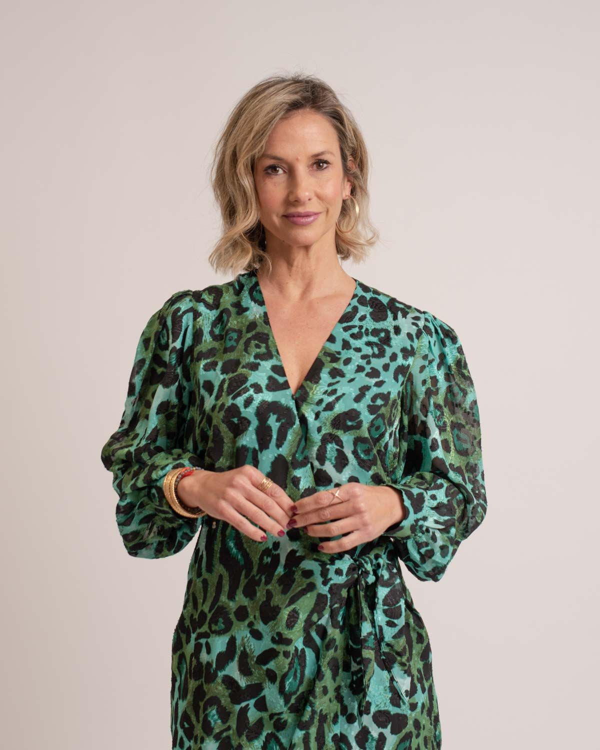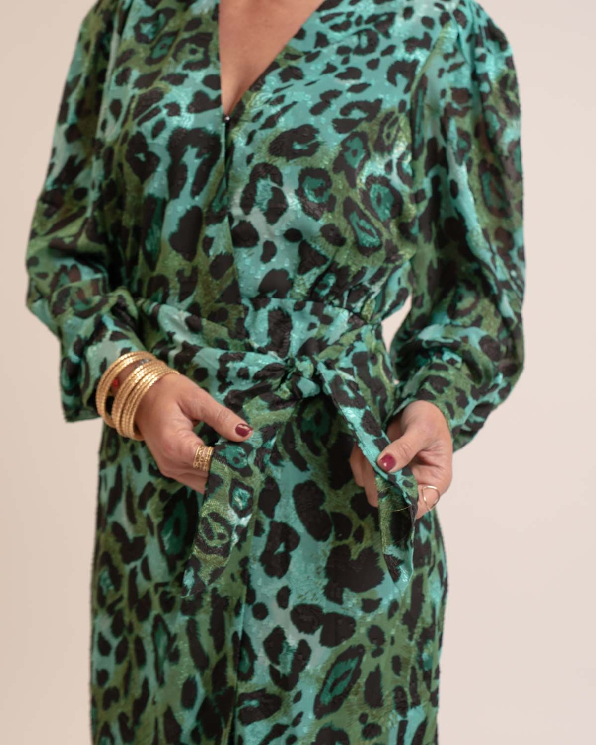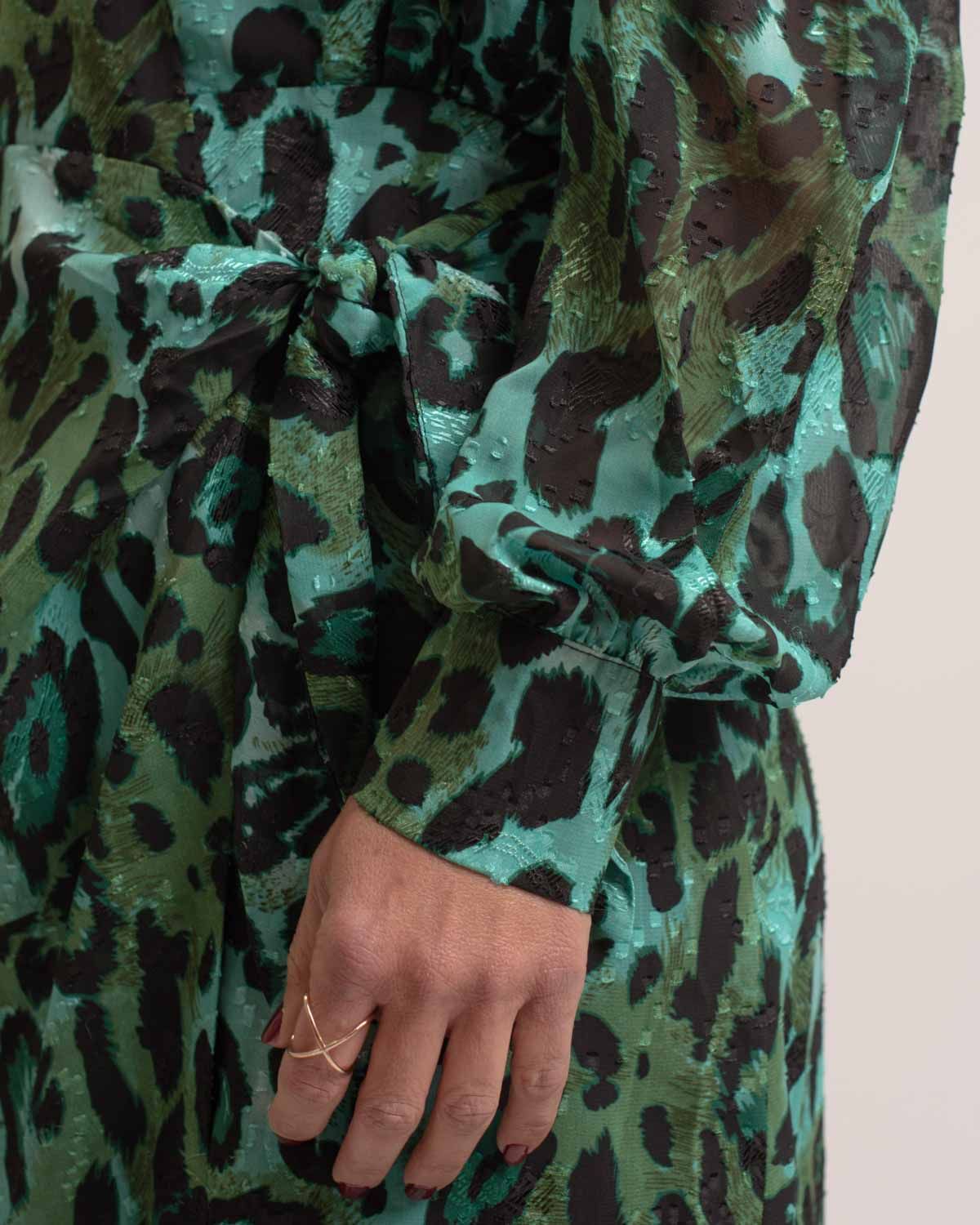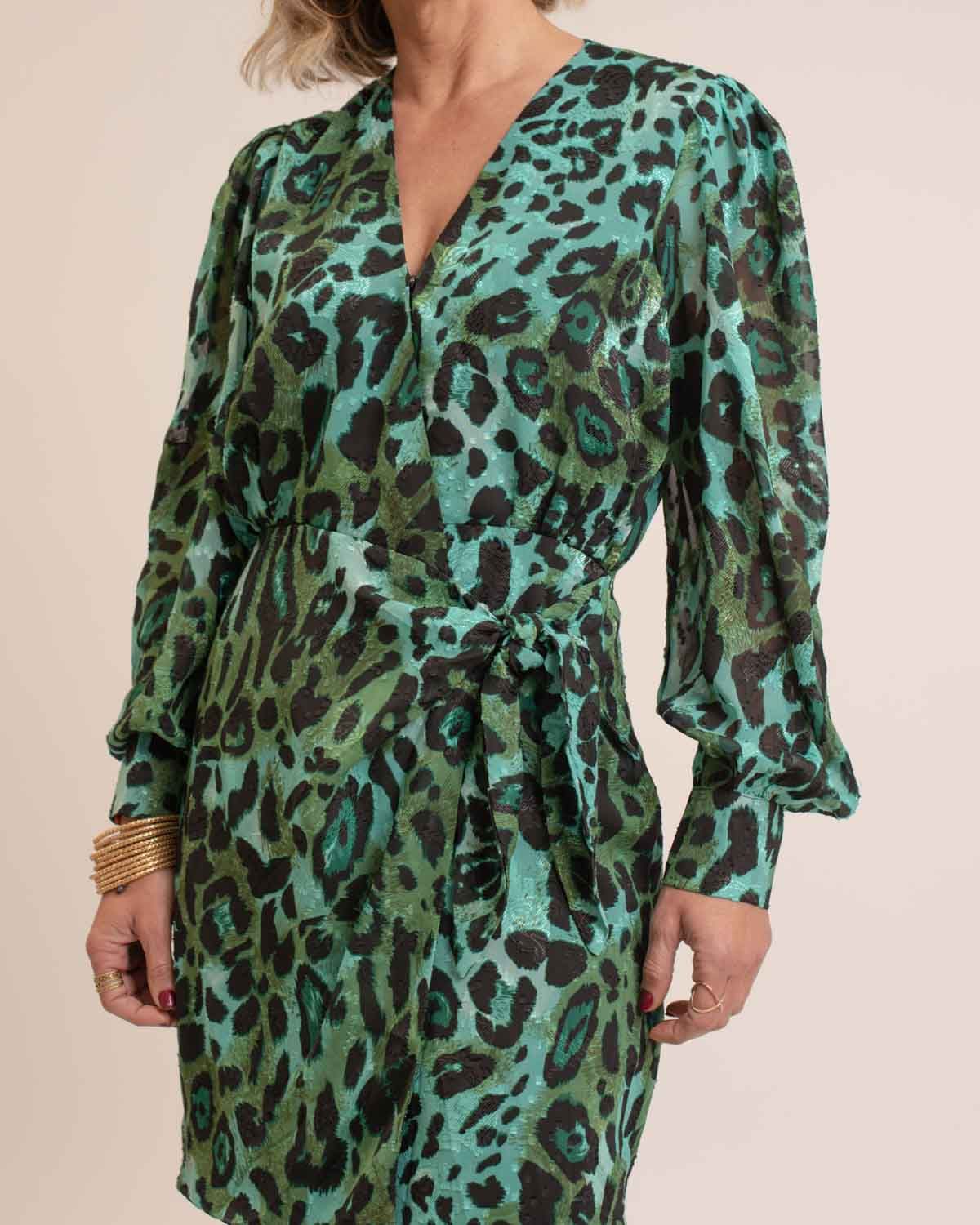 Vestido perfecto para llevar con botas y chupa de cuero. Detalle en los puños. Escote pico cruzado con lazada. Forro interior. 100% poliéster.