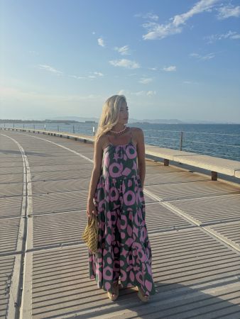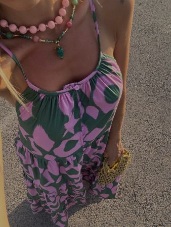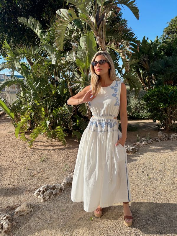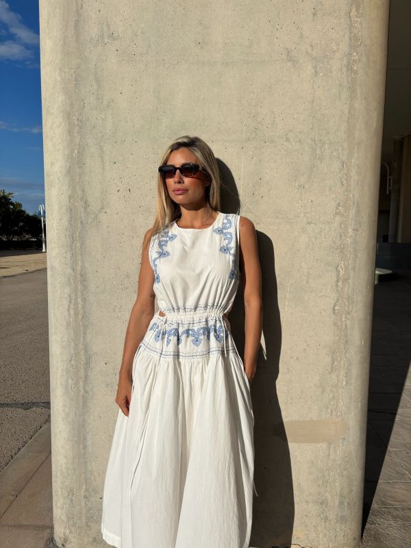 Cuello redondo, manga sisa y frunce central con detalle cut out a la cintura.